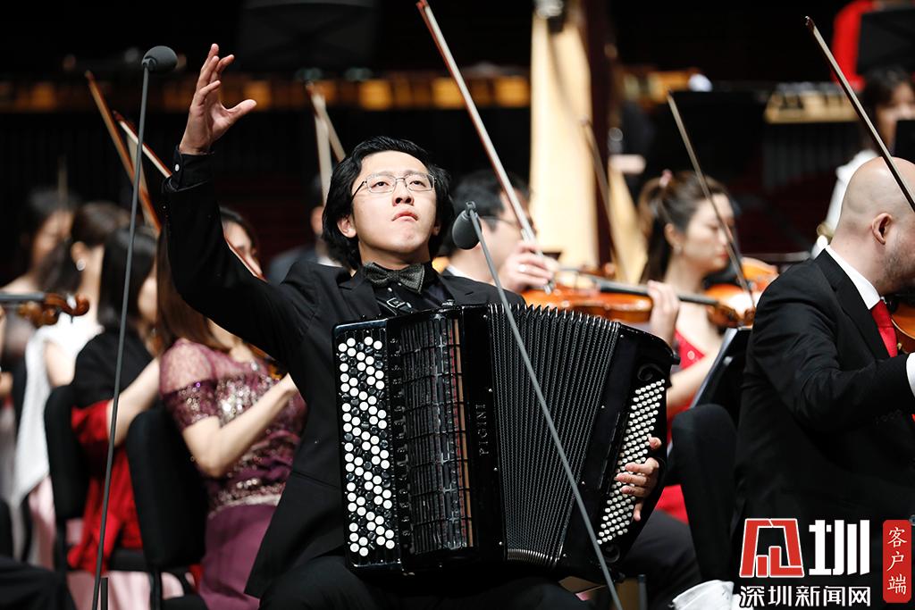 中國青年巴揚(yáng)手風(fēng)琴演奏家毛俊澔在彩排現(xiàn)場演奏。