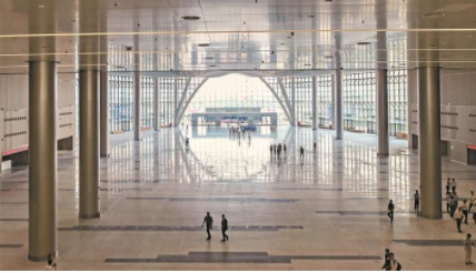 深圳國際會(huì)展中心嚴(yán)把質(zhì)量關(guān),僅3年就完工,創(chuàng)造了會(huì)展中心建設(shè)的“深圳速度”。圖為北登錄大廳。