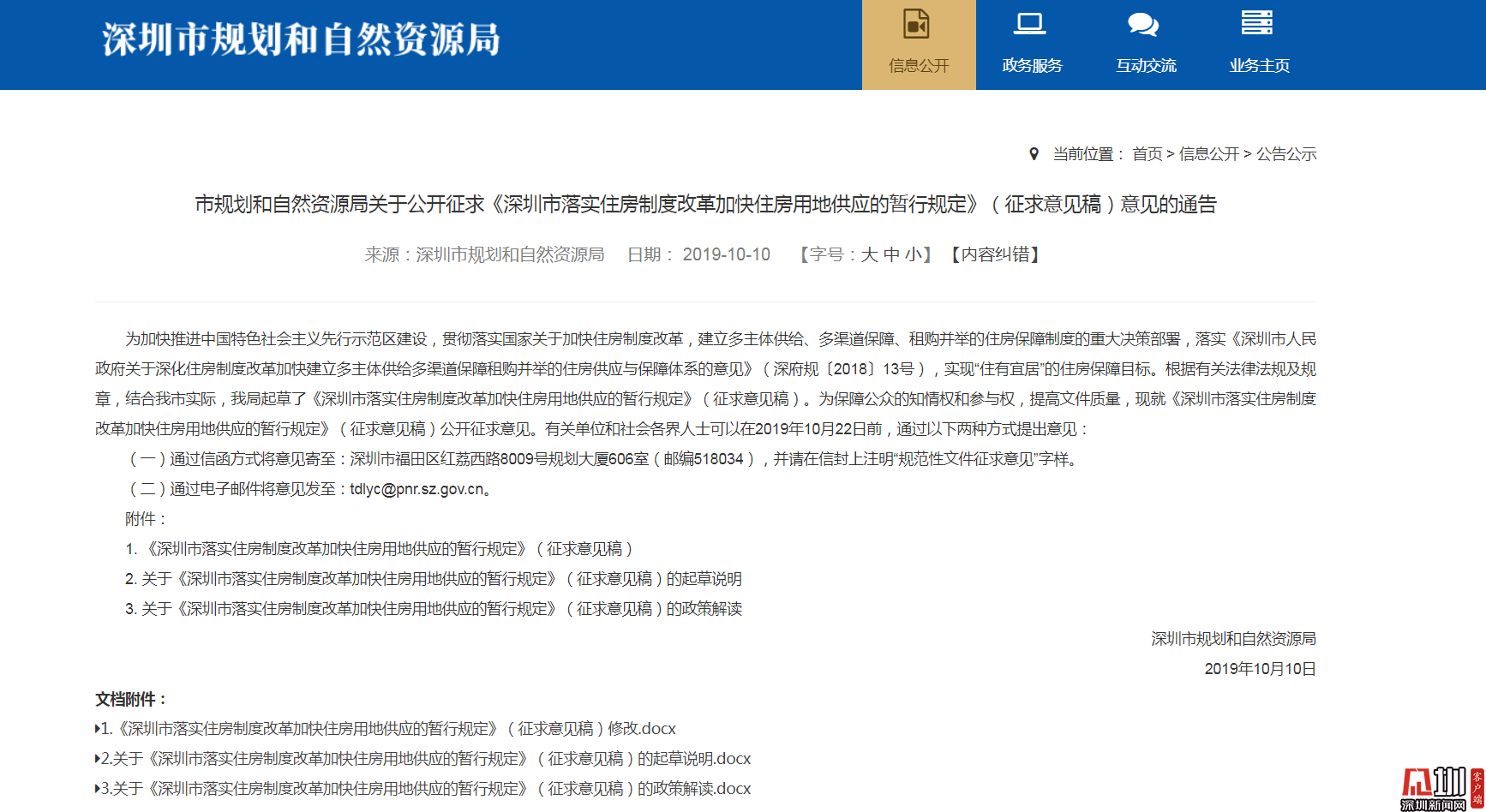 見圳客戶端·深圳新聞網(wǎng)2019年10月10日訊(見圳客戶端、深圳新聞網(wǎng)記者潘潤華)為實現(xiàn)深圳“住有宜居”的住房保障目標(biāo),10月10日,市規(guī)劃和自然資源局就《深圳市落實住房制度改革加快住房用地供應(yīng)的暫行規(guī)定》(征求意見稿)公開征求社會意見。為保障住房供應(yīng),文中最終研究確定了十一種用地供應(yīng)渠道。