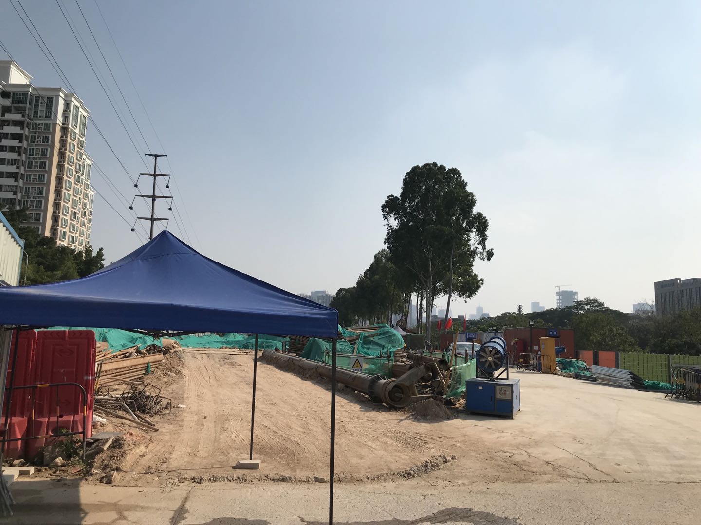9月29日下午,記者走訪了施工現(xiàn)場,未見有工人作業(yè)。工地保安稱,該處確在建設(shè)雨水調(diào)蓄池,因為附近居民投訴反對,項目已暫停施工。在施工入口處的圍板外,確如市民所述,未見張貼有該工程的項目名稱、施工時間、環(huán)評報告等相關(guān)信息的公告,只有相鄰施工項目——龍珠一路跨大沙河橋市政工程的公告牌。