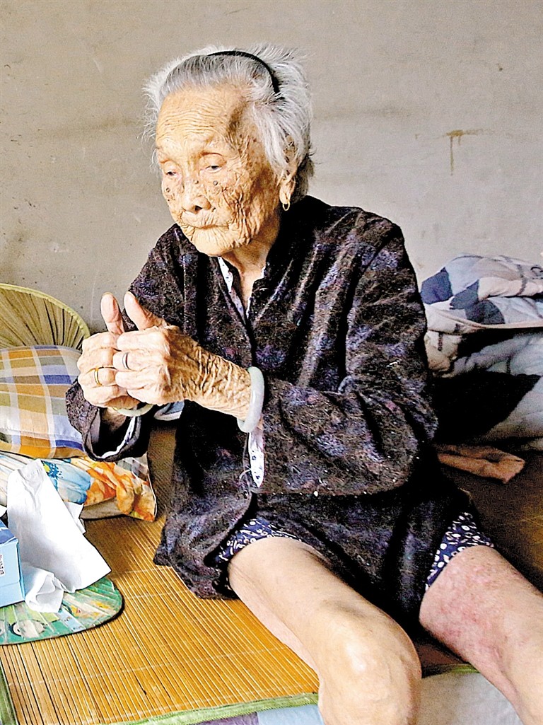 9月底,陽(yáng)光明媚的上午,101歲的陳汝金像往常一樣坐在家里,陽(yáng)光照進(jìn)屋子,照在她的臉上,一切顯得平靜安詳。福永街道鳳凰社區(qū)工作站的工作人員帶著鮮花和水果,和記者一起來(lái)到老人家里。這一天,老人的外孫女文小姐和孫媳婦也正好回來(lái)看望她。
