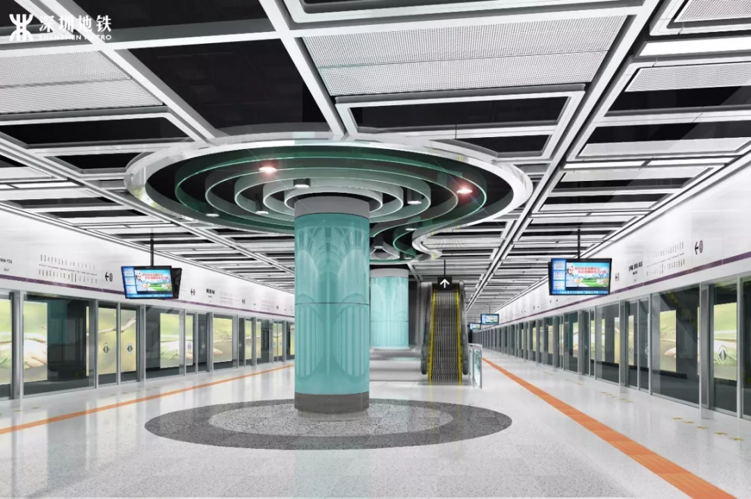9號線二期全線方案在統(tǒng)一的設(shè)計(jì)理念下,將特色車站做到一站一景,同時結(jié)合了站點(diǎn)周邊特色元素,重點(diǎn)站體現(xiàn)區(qū)域文化特色,打造其成深圳體現(xiàn)“宜居科技、智慧生活”的特色線路。