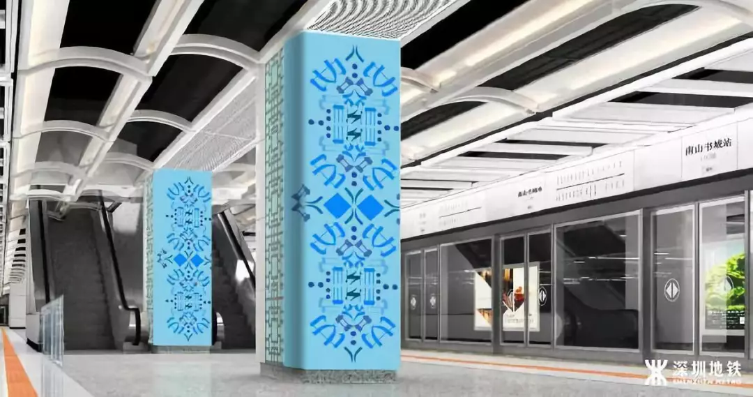 原9號線一期線路的裝修設(shè)計(jì)主題為“宜居生活”,體現(xiàn)的是深圳宜居生態(tài),綠色生活的概念,設(shè)計(jì)元素選取的是深圳嶺南及客家文化。
