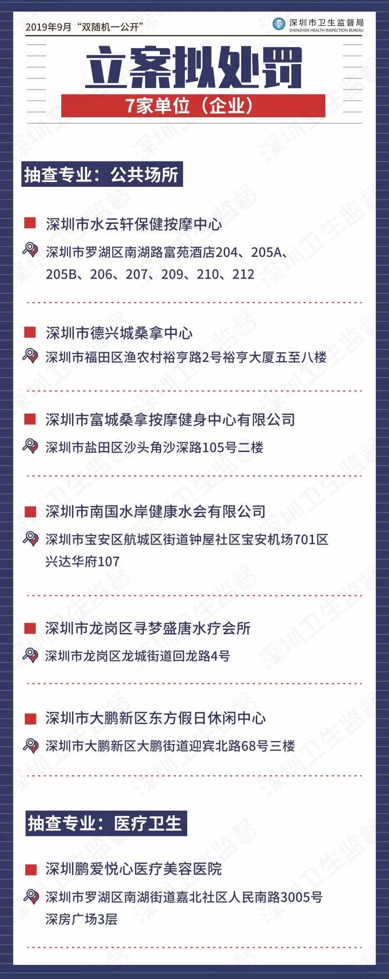 曝光!深圳9月雙隨機抽查,這7家公共場所和醫(yī)療機構被處罰