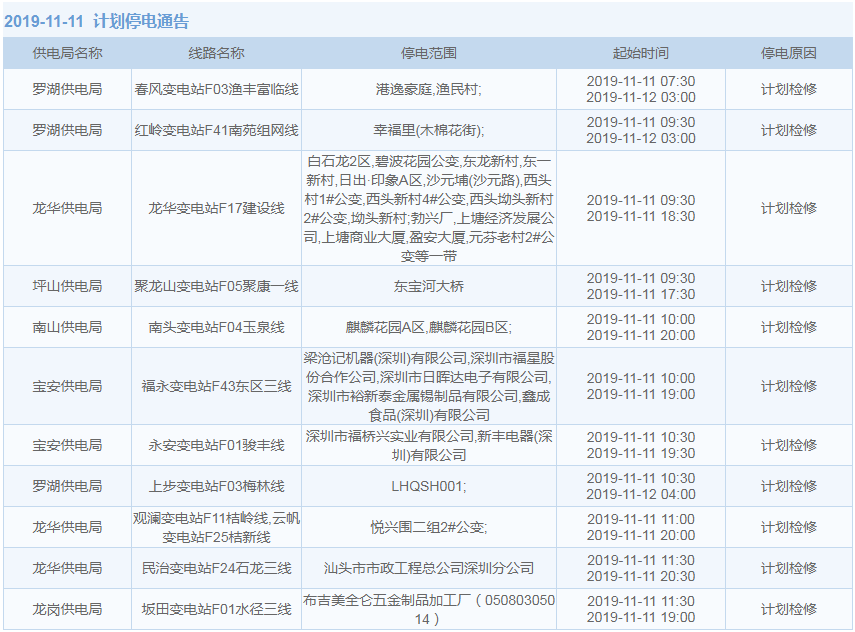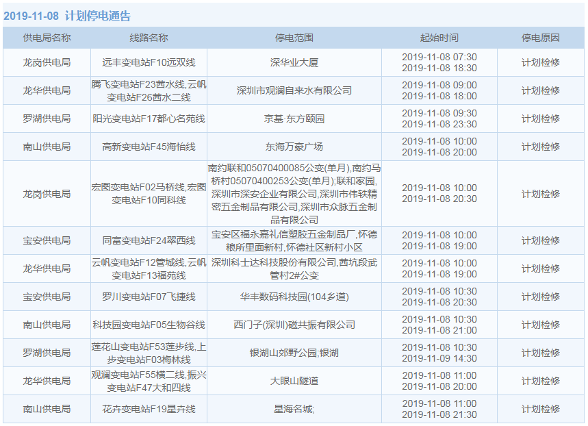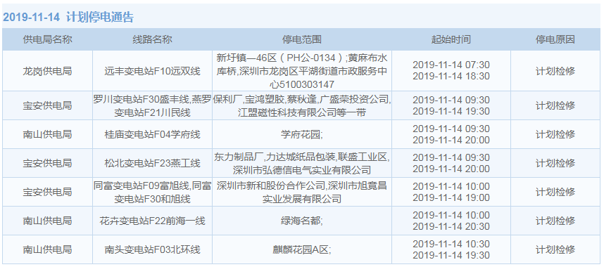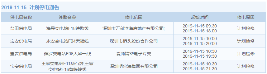 見圳客戶端·深圳新聞網2019年10月29日訊 據中國南方電網最新消息:11月1日至11月15日,深圳這些地方將停電!快來看看有沒有你家的吧。