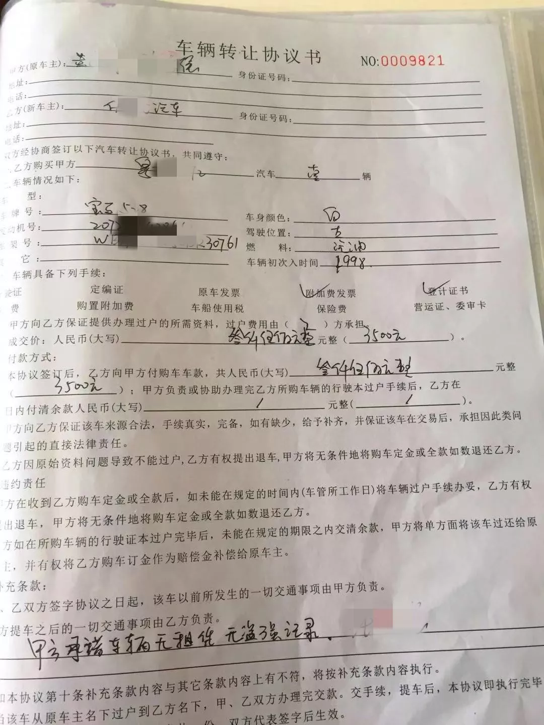 (現(xiàn)場發(fā)現(xiàn)的車輛轉讓協(xié)議書)