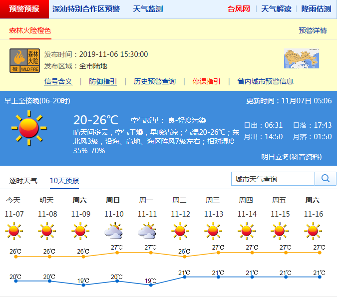 見圳客戶端·深圳新聞網(wǎng)2019年11月7日訊 空氣非常干燥,沿海及高地陣風(fēng)7級左右,氣溫20-26℃。未來幾天干燥加劇,請注意用火安全,戶外運動需及時補充水分。