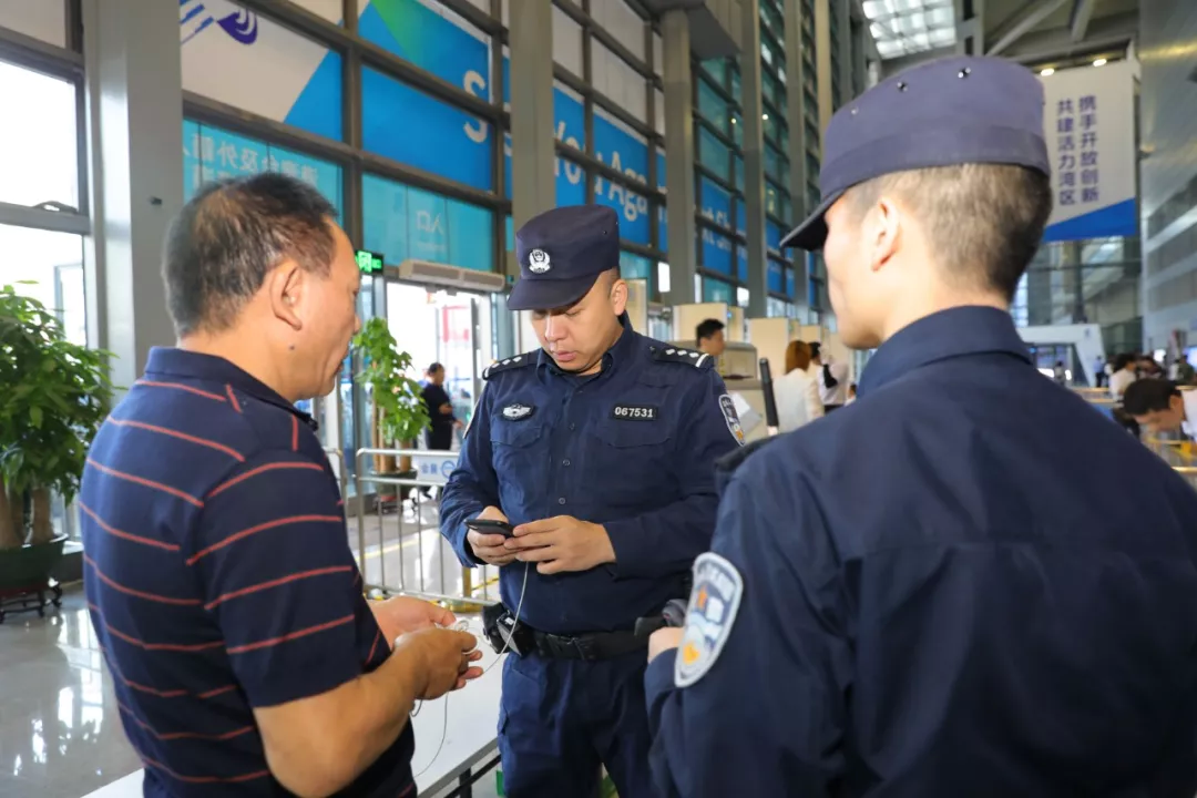 福田公安分局堅持科技興警、改革強警,以科技信息化手段為支撐點,在會展中心12個安檢口設置34個安檢門,安裝人像識別設備和視頻監(jiān)控,同時嚴查車輛、人員和物品,嚴控管制器具和易燃易爆物品等,確保場館內外防控無死角、全覆蓋。