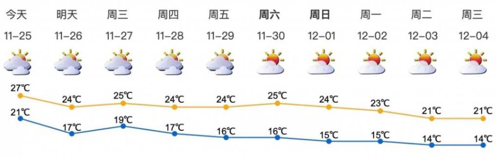 11月27日風(fēng)力減弱,早晚清涼;