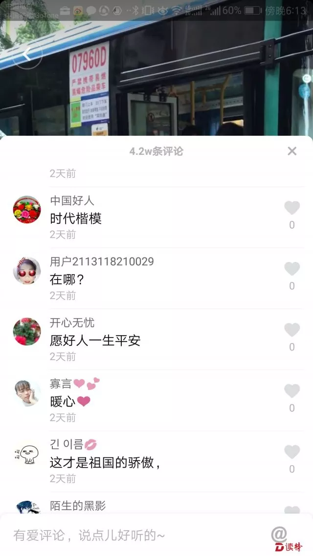 暴雨中,一輛深圳公交車被湍急的水流圍困,為了安全轉移車上的乘客,司機冒雨到附近找來兩塊木板,在站臺和公交車間搭起一座“木橋”,車上乘客沿著“木橋”被攙扶著一個個安全地撤離。而這一幕,被乘客拍成短視頻發(fā)到抖音,短短一星期,播放量達400多萬,獲得點贊254萬,評論多達4萬多條,成為抖音上最火爆的“深圳好聲音”之一。