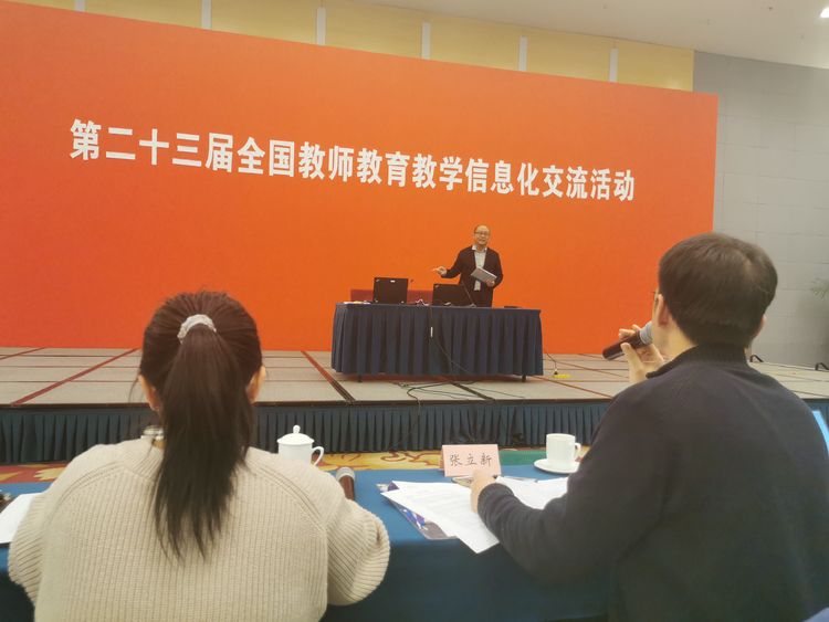 從比賽前的努力準備到克服比賽時的忐忑、緊張,李老師戰(zhàn)勝了對手,更戰(zhàn)勝了自己,教育教學信息化的水平又提升了一個臺階。從與臺上云集的高手PK,到與大師們(例如中央電教館潘克明館長)的交流、碰撞、升華,李老師從容不迫,發(fā)揮出色,贏得了陣陣掌聲。