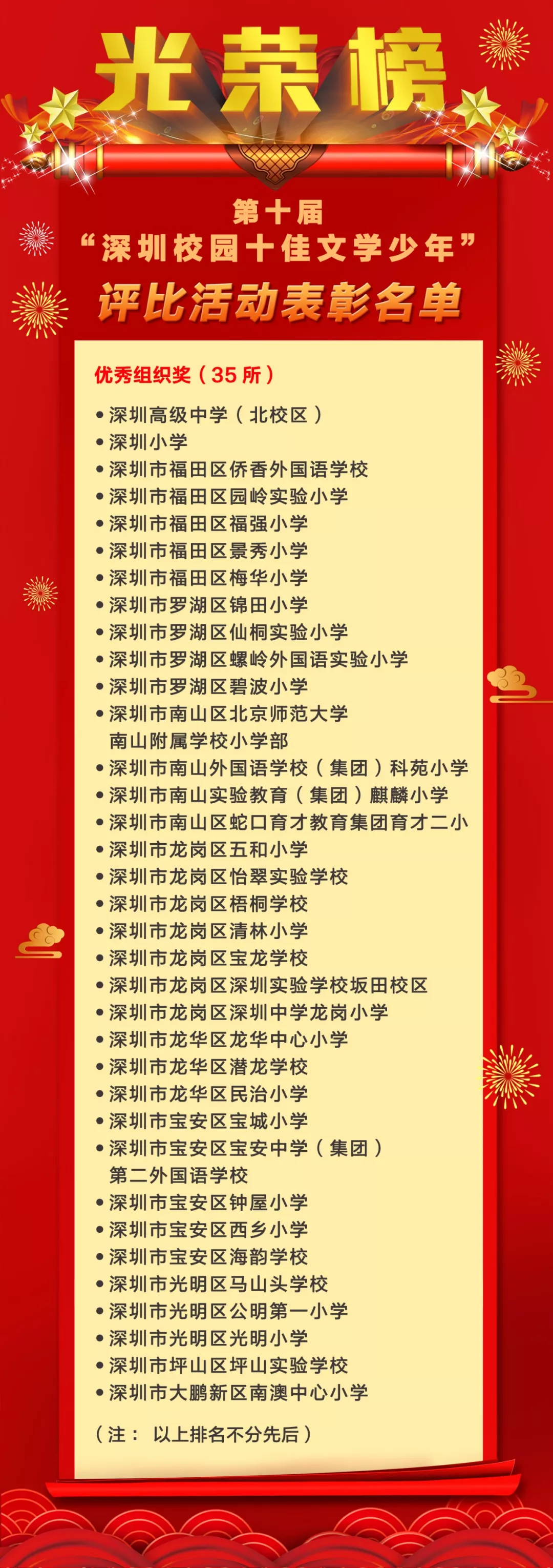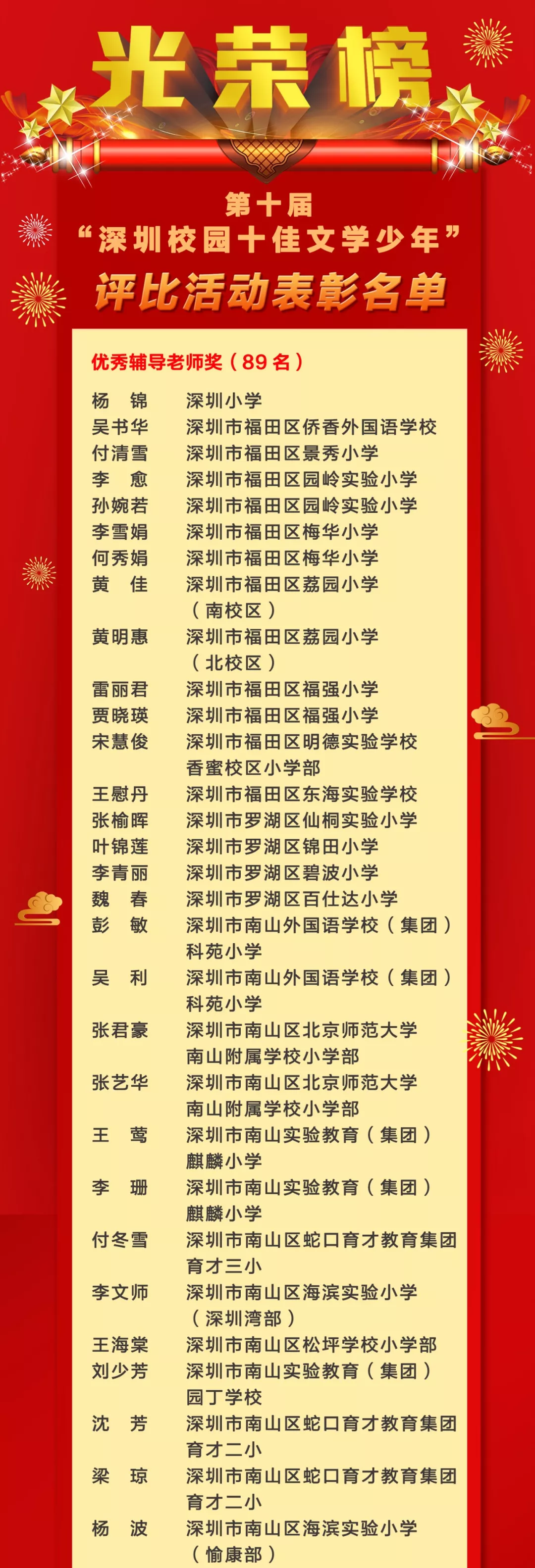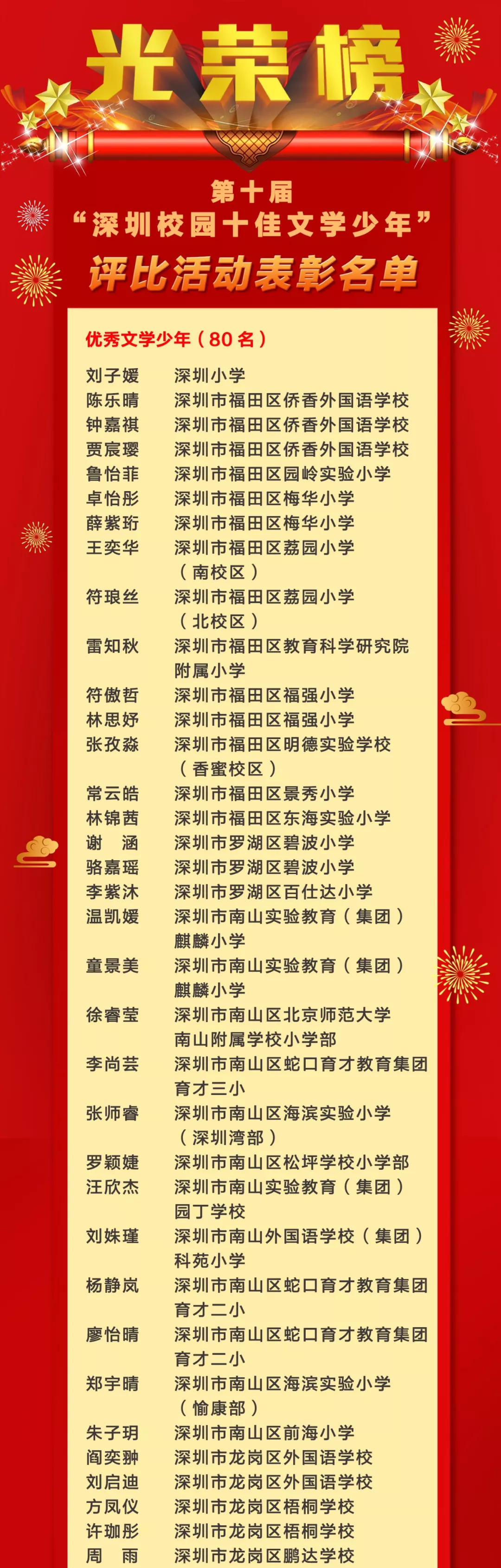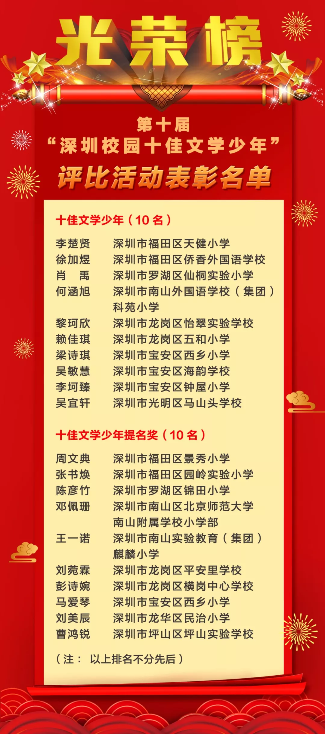 第十屆“深圳校園十佳文學(xué)少年”評比活動表彰名單
