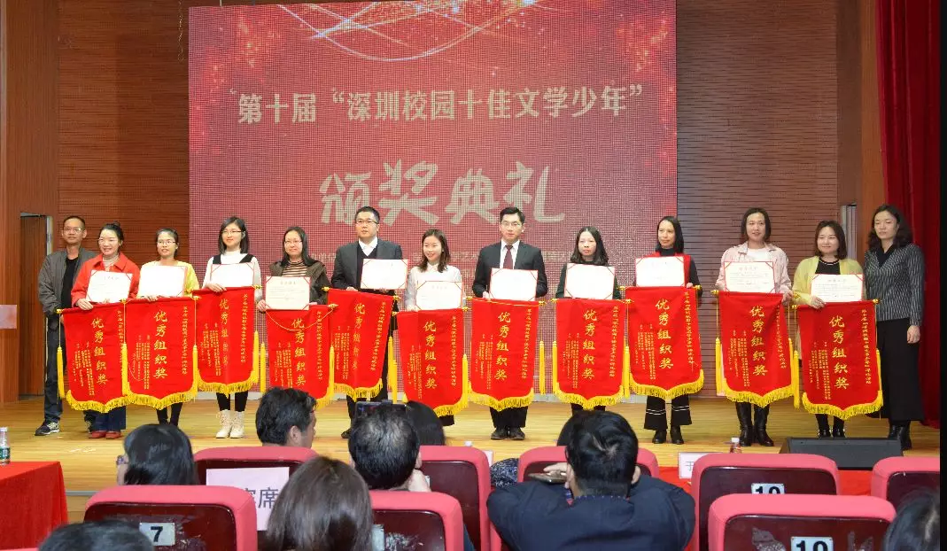 活動還揭曉了“十佳文學(xué)少年提名獎”“優(yōu)秀文學(xué)少年”“優(yōu)秀輔導(dǎo)老師獎”和“優(yōu)秀組織獎”的獲獎個人及學(xué)校。深圳市羅湖區(qū)錦田小學(xué)陳彥竹等10名學(xué)生獲評“十佳文學(xué)少年提名獎”,深圳小學(xué)劉子媛等80名學(xué)生獲評“優(yōu)秀文學(xué)少年”,深圳市福田區(qū)僑香外國語學(xué)校吳書華等89名教師榮獲“優(yōu)秀輔導(dǎo)老師獎”,深圳高級中學(xué)(北校區(qū))等35所學(xué)校獲得“優(yōu)秀組織獎”。