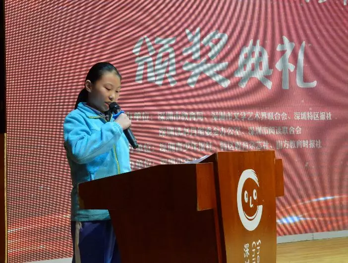 頒獎會由深圳教育報刊總社總經(jīng)理鄧衛(wèi)主持。深圳市教育局副局長王水發(fā)、深圳報業(yè)集團(tuán)副總編輯呂延濤、深圳市文聯(lián)副主席張忠亮、深圳市教育局德體衛(wèi)藝處處長馮妍妍、深圳讀書月組委會辦公室主任助理、深圳出版集團(tuán)綜合事業(yè)部部長朱德明、深圳教育報刊總社總編輯李青松和深圳市閱讀聯(lián)合會專職副秘書長于芃等領(lǐng)導(dǎo)分別為獲獎學(xué)生、老師和學(xué)校代表頒獎。