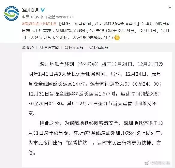 這里還要給大家插播一條交通消息。小編掐指一算,2019年馬上就要結束了,各位小伙伴是不是都開始,為新年假期做準備了呢?這么重要的出去浪的機會,怎能為趕不上末班地鐵煩惱?不要緊,地鐵也延長運營時間啦。