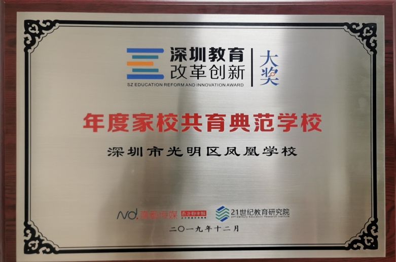 見(jiàn)圳客戶(hù)端、深圳新聞網(wǎng)2019年12月20日訊(記者 陳彬)2019年12月20日,第五屆深圳教育改革創(chuàng)新論壇在深圳大學(xué)科技樓隆重召開(kāi),論壇現(xiàn)場(chǎng)公布并頒發(fā)了各項(xiàng)深圳教育改革創(chuàng)新大獎(jiǎng),光明區(qū)鳳凰學(xué)校首次榮獲2019年深圳教育改革創(chuàng)新“年度家校共育典范學(xué)?!?!