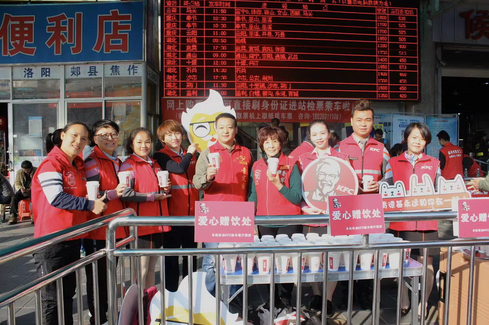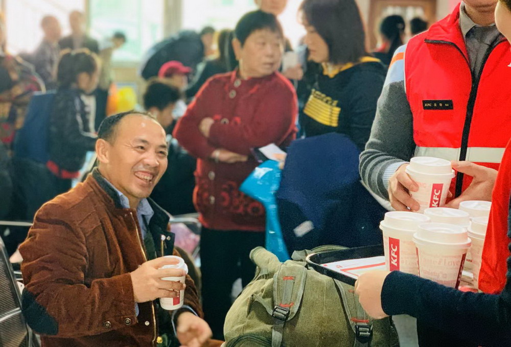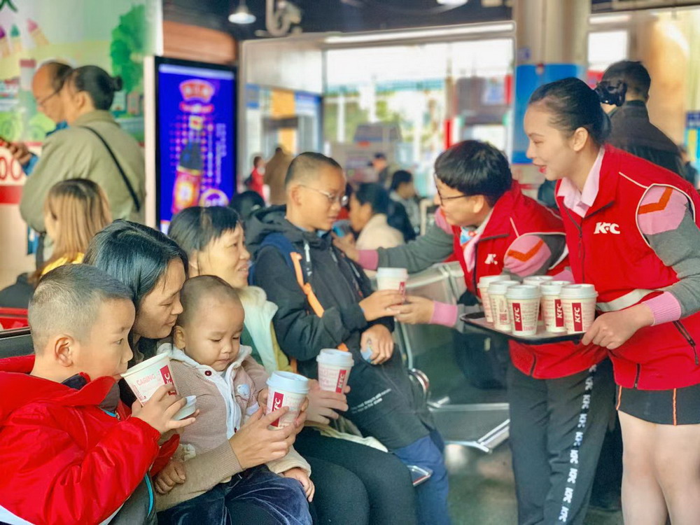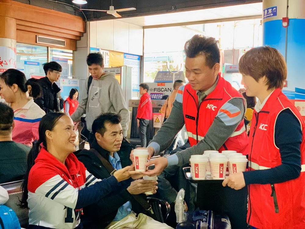 春節(jié)臨近,深圳福永汽車(chē)站迎來(lái)旅客返鄉(xiāng)的高峰。1月12日,深圳肯德基聯(lián)合福永義工聯(lián)為返鄉(xiāng)的建設(shè)者贈(zèng)送1000杯愛(ài)心熱飲,將溫暖與愛(ài)帶回家。據(jù)悉,這是深圳肯德基第三年參與春運(yùn)愛(ài)心贈(zèng)飲活動(dòng)。