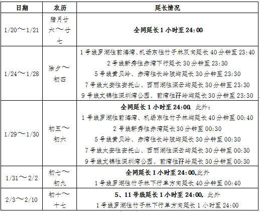 深圳地鐵“春運(yùn)模式”即將啟動(dòng),春節(jié)7天延長(zhǎng)營(yíng)運(yùn)時(shí)間1小時(shí)