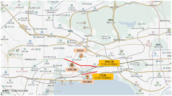 預(yù)計歡樂海岸-世界之窗-歡樂谷片區(qū)春節(jié)假期周邊主要擁堵路段有深南大道(11:30-12:30東行)、白石路(17:30-19:00東行)。具體分布如下: