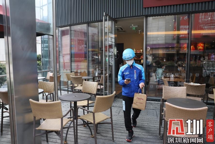 在咖啡店等待商家制作完成,取貨后,王彭輝便馬不停蹄地騎著電動車前往訂單上的地址。平日繁華的南山商區(qū),現(xiàn)在空空蕩蕩的,除了偶爾有車輛開過,路上幾乎都是外賣小哥、快遞小哥的身影,“現(xiàn)在就是大家都待在家里,路上人和車少了,我們也能更快地把訂單送達?!蓖跖磔x說:“我以前是在梅林那邊工作,剛開始來南山這邊送外賣的時候,對這里的路不熟悉,覺得每個路口都長得一樣,抬頭都是大廈,低頭都是人,但是做得久了以后,慢慢的就熟悉了?!?/p>