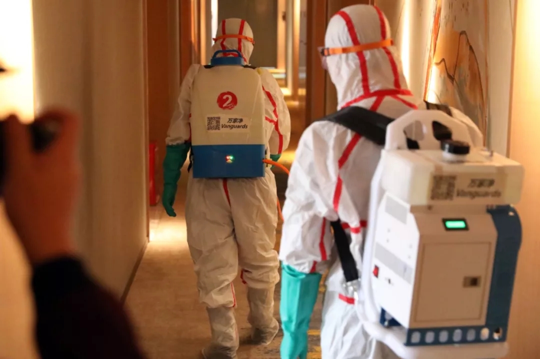▲疾控人員對(duì)病人逗留過(guò)的場(chǎng)所進(jìn)行終末消毒