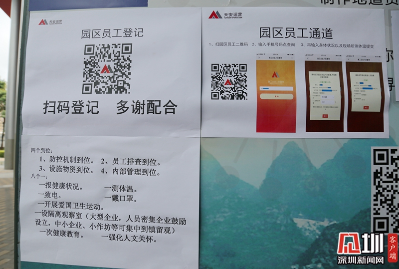如果企業(yè)全部復(fù)工,龍崗天安數(shù)碼城將有一萬多名員工,進(jìn)出都需登記,工作量可想而知。對(duì)此,天安運(yùn)營還創(chuàng)新開發(fā)了專門的小程序,用于日常對(duì)進(jìn)出人員的監(jiān)管。由企業(yè)上報(bào)員工信息,錄入網(wǎng)上系統(tǒng),員工進(jìn)出時(shí),用手機(jī)掃描一下,就會(huì)出現(xiàn)該名員工的基本信息,體溫合格后,系統(tǒng)將生成一個(gè)電子版的通行證,快速地進(jìn)行登記,避免造成人員擁堵。
