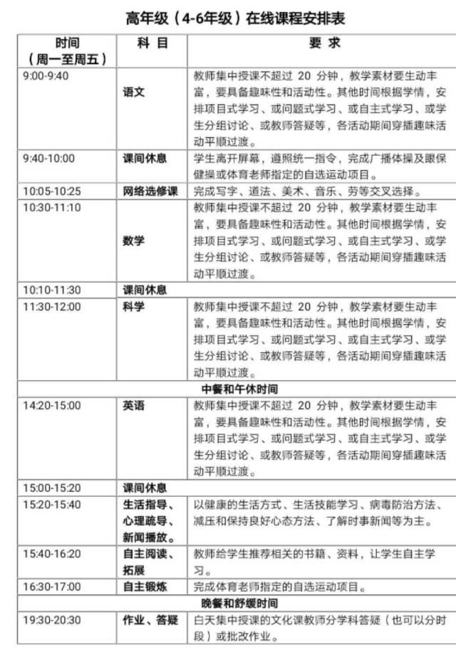 于女士向小編展示了其大女兒學(xué)校的在線課程安排表: