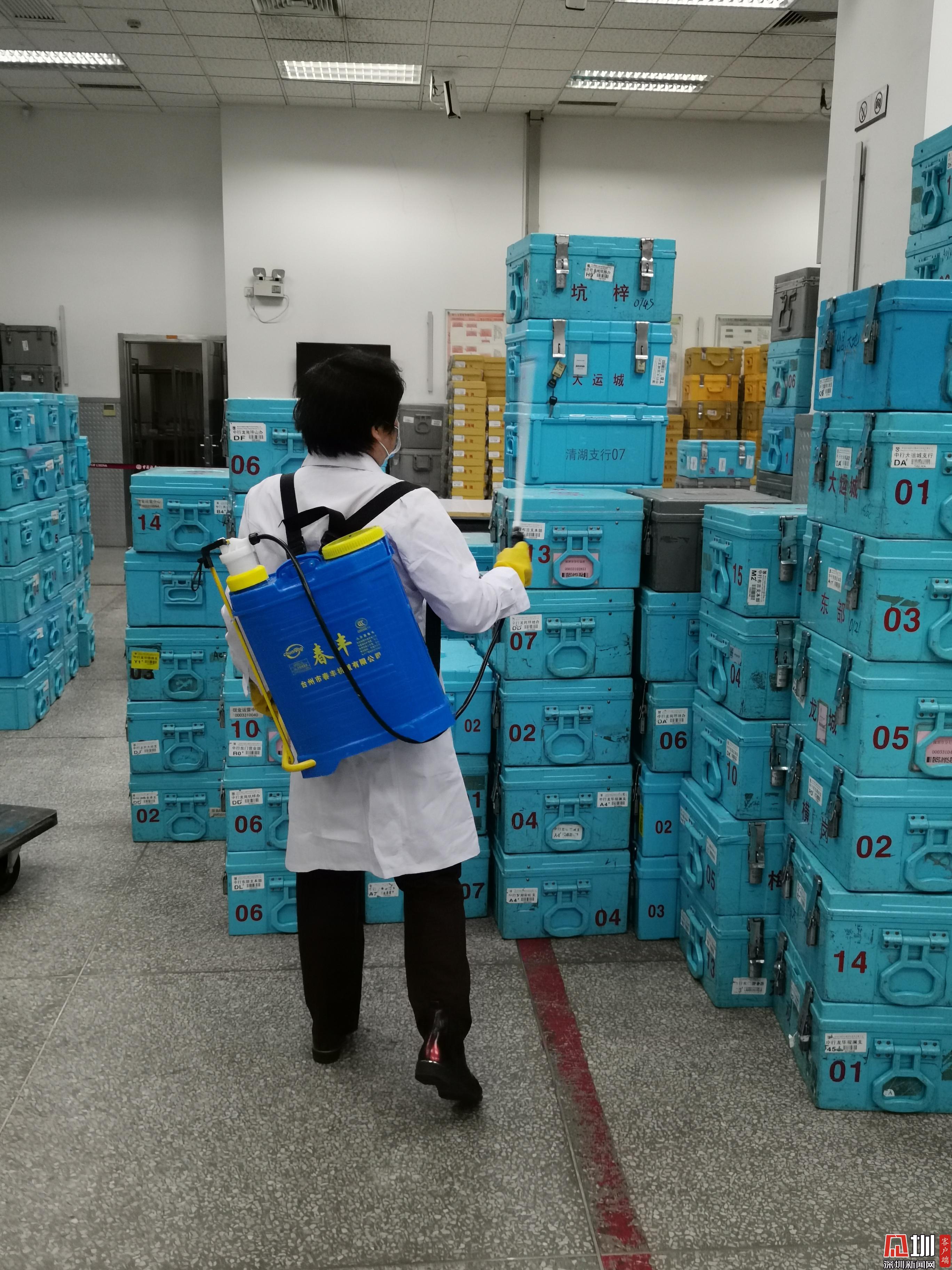 中國(guó)銀行深圳市分行對(duì)現(xiàn)金尾箱進(jìn)行消毒