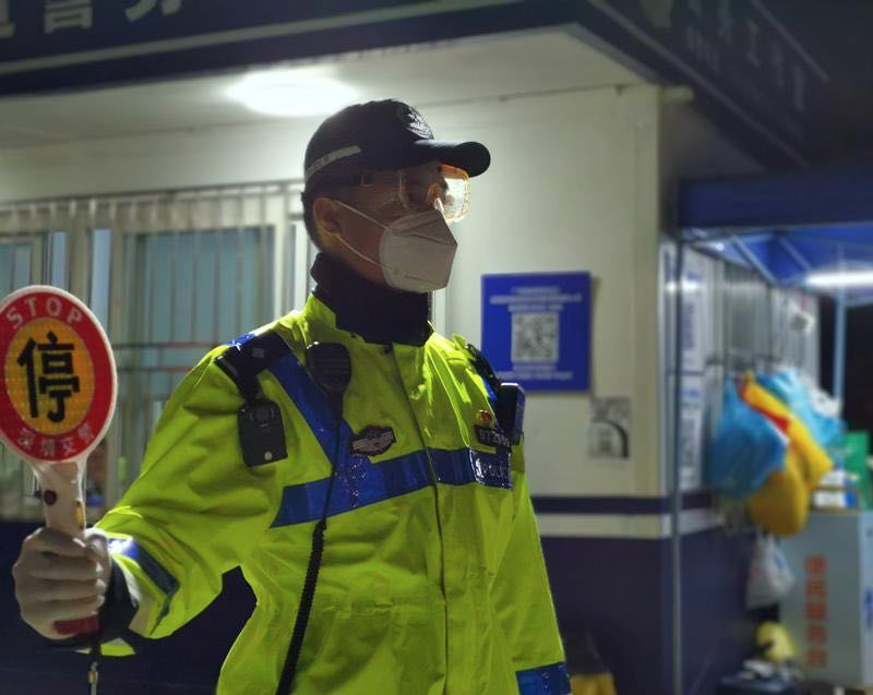 2月14日的凌晨,龍利正在廣深高速寶安收費(fèi)站防疫檢查點(diǎn)執(zhí)勤,每一輛入深的車輛他都必須仔仔細(xì)細(xì)地?cái)r截下來(lái),核對(duì)信息,協(xié)助防疫工作人員給車上所有人測(cè)量體溫。