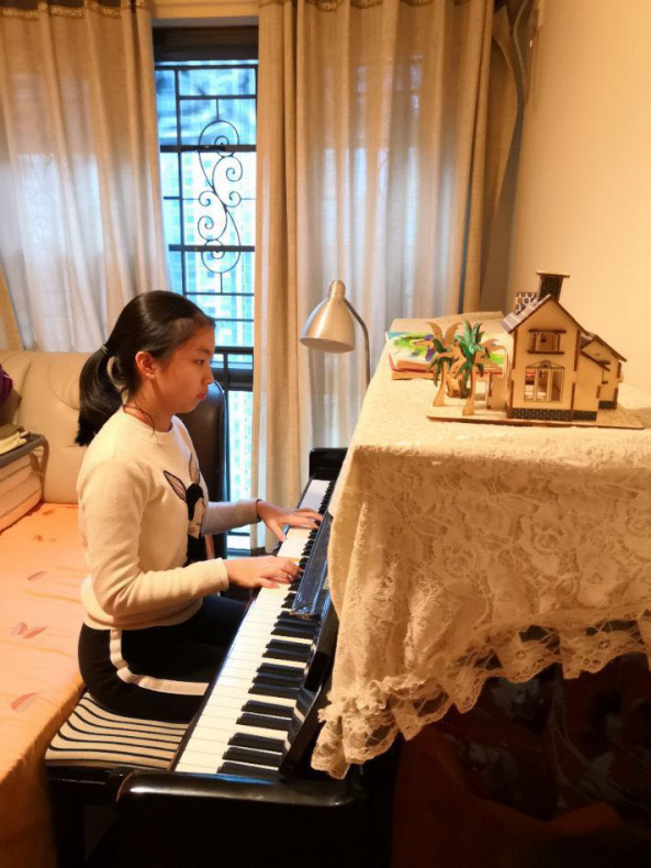 創(chuàng)作過程中,凃依舟遇到不少瓶頸?!办`感來時(shí),我先彈出來,再記下來。但當(dāng)化作音符時(shí),卻找不到當(dāng)時(shí)的旋律了?!眱蛞乐壅f。為解決難題,爸爸凃永剛不斷為女兒支招?!斑厪椷呁晟?。不用刻意去渲染,真情流露就是最飽滿地創(chuàng)作?!眱蛴绖倢?duì)女兒說。一周后,《在遠(yuǎn)處想著你》完成了。“我們非常支持凃依舟做這件事,看到全國都在為武漢加油,很感動(dòng),希望疫情早點(diǎn)結(jié)束?!眱蛴绖傉f。