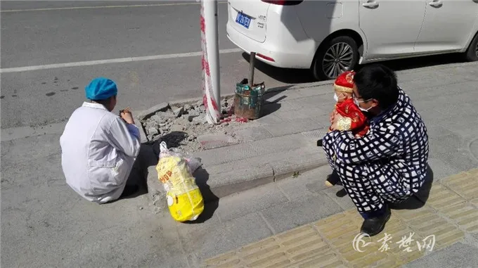 19日中午,鄖西店子鎮(zhèn)衛(wèi)生院女護(hù)士江世娥乘救護(hù)車從鄖西店子鎮(zhèn)轉(zhuǎn)運(yùn)一腦梗病人到鄖西縣人民醫(yī)院,途經(jīng)家門不能回家,在路邊蹲地吃婆婆煮的餃子,丈夫和9個(gè)月大的兒子兩米外相望的淚目場景。