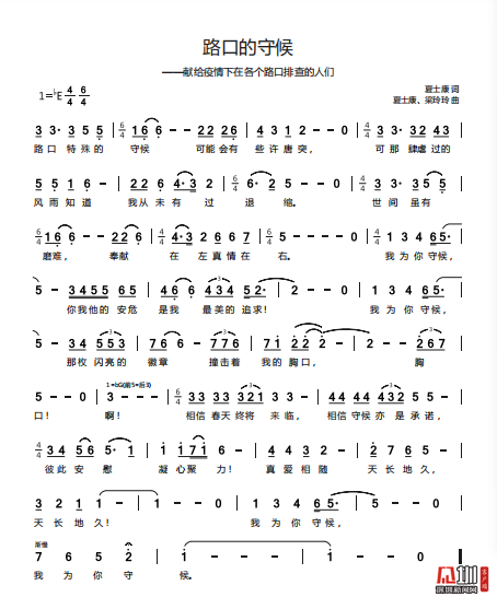 近日,龍崗區(qū)文化廣電旅游體育局職工夏士康、梁玲玲聯(lián)合北京自由音樂(lè)人劉珂銘創(chuàng)作的歌曲《路口的守候》正式推出?!奥房?,特殊的守候,可能會(huì)有些唐突,可那肆虐過(guò)的風(fēng)雨知道,我從未有過(guò)退縮……”該歌曲以抗疫一線(xiàn)實(shí)錄為背景,深情表達(dá)了對(duì)以“路口戰(zhàn)士”為代表的抗疫戰(zhàn)士們的敬愛(ài)之情,及眾志成城、抗疫必勝的堅(jiān)定信念。