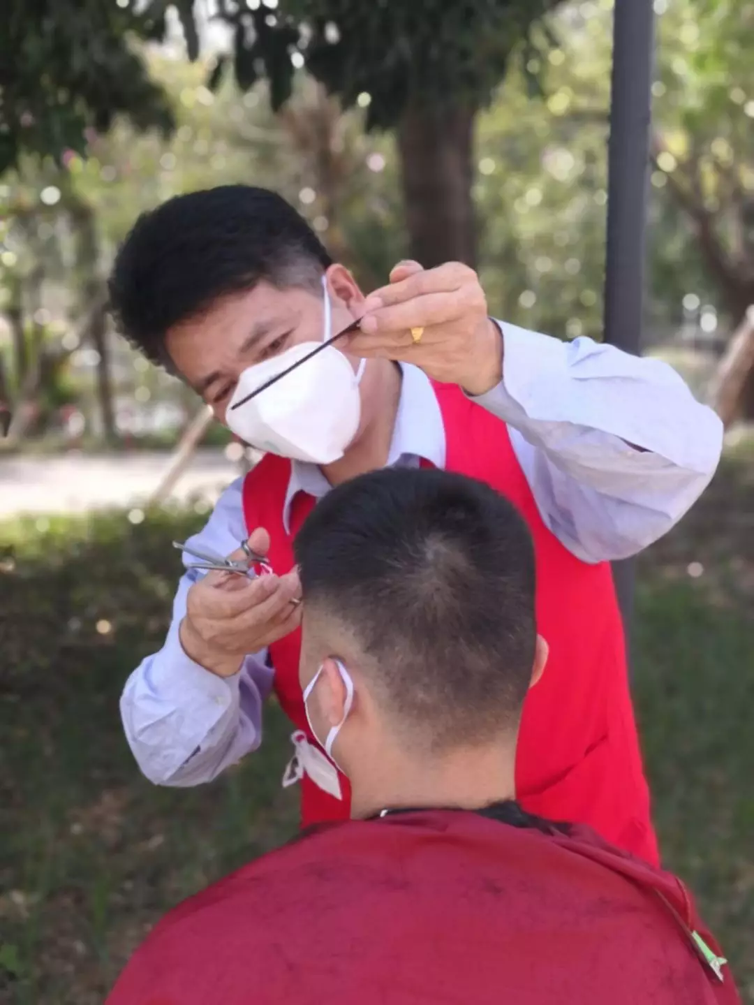 這天,垃圾吊師傅石明山急匆匆找到寶安能源生態(tài)園團(tuán)總支志愿者服務(wù)隊(duì),“我以前開(kāi)過(guò)理發(fā)店,工具就在宿舍,我可以義務(wù)給大家理發(fā)!”大樹下,一套工具,兩把塑料凳,老石的“疫剪理發(fā)站”就齊活了。一個(gè)下午,老石一刻不停地為近50人修剪了精干的發(fā)型,并獲得“顧客”的一致好評(píng)。老值長(zhǎng)陳林生理完發(fā)感慨道:“老石在廠里十幾年了,這么多年都是垃圾吊隊(duì)伍的中堅(jiān)力量,沒(méi)想到理發(fā)技術(shù)也這么好!”天黑了,預(yù)約隊(duì)伍里還有數(shù)十人在排隊(duì),石明山說(shuō),明天我白轉(zhuǎn)夜,等我后天下夜班,“疫剪理發(fā)站”咱們繼續(xù)!