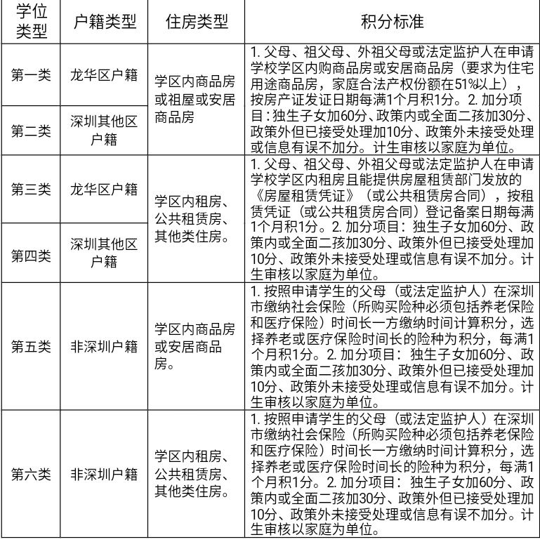 深圳戶籍。申請入學適齡兒童、少年的父母(或法定監(jiān)護人)戶籍遷入深圳時間最長的一方計算積分,每滿一個月加0.1分。