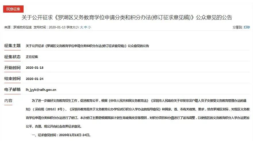 羅湖區(qū)在1月13日發(fā)布了《羅湖區(qū)義務(wù)教育學(xué)位申請(qǐng)分類和積分辦法(修訂征求意見稿)》向市民征求意見。