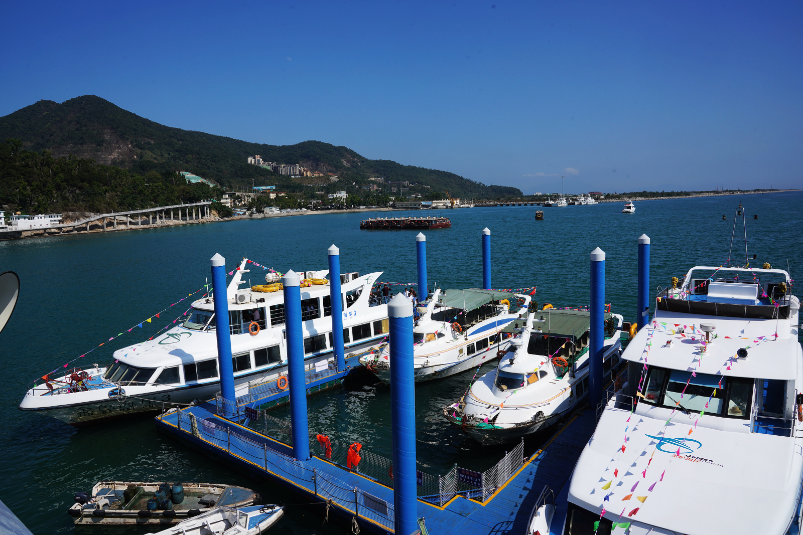 ??吭邴}田金色海岸碼頭處運(yùn)營(yíng)游船。韋建誠(chéng)攝