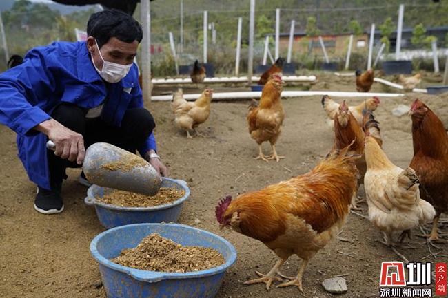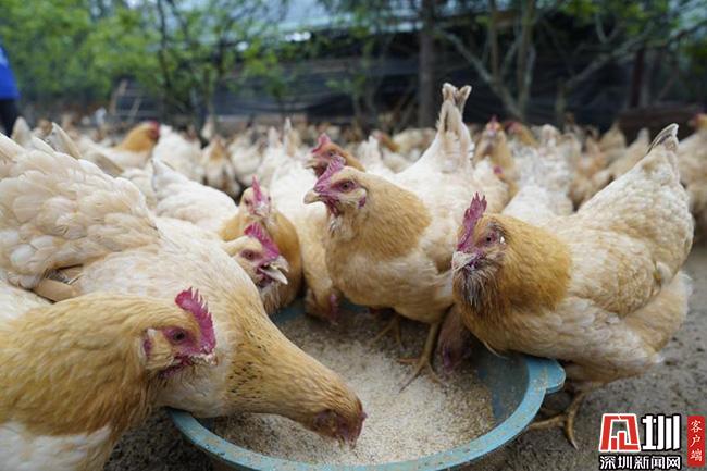 3月11日的清晨,66歲的王子平頂著薄霧,在田西村百香雞孵化養(yǎng)殖基地中,撒下了喂養(yǎng)雞群的百香果玉米等混合飼料。這些雞,已經在田西村山坡上散養(yǎng)了超過240天,也就是扶貧產業(yè)農產品“百香雞”。這是深圳南山對口扶貧連平縣百香雞孵化養(yǎng)殖基地的一個勞作場景。
