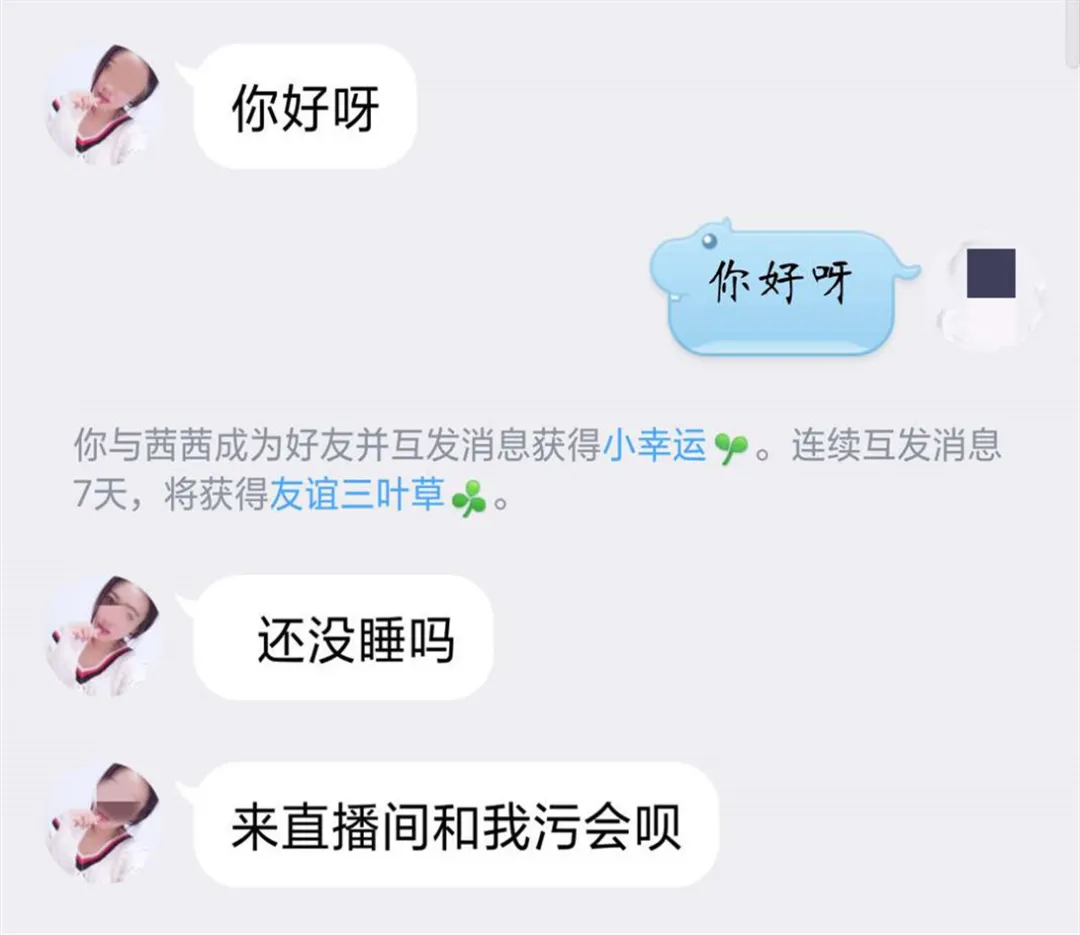 夜深人靜,家人已睡。私企經(jīng)理陳先生(化名)百無聊賴,“附近的人”發(fā)來美女的問候。跳動的頭像皓齒紅唇,主頁照片,皮裙波浪,真的像樣。