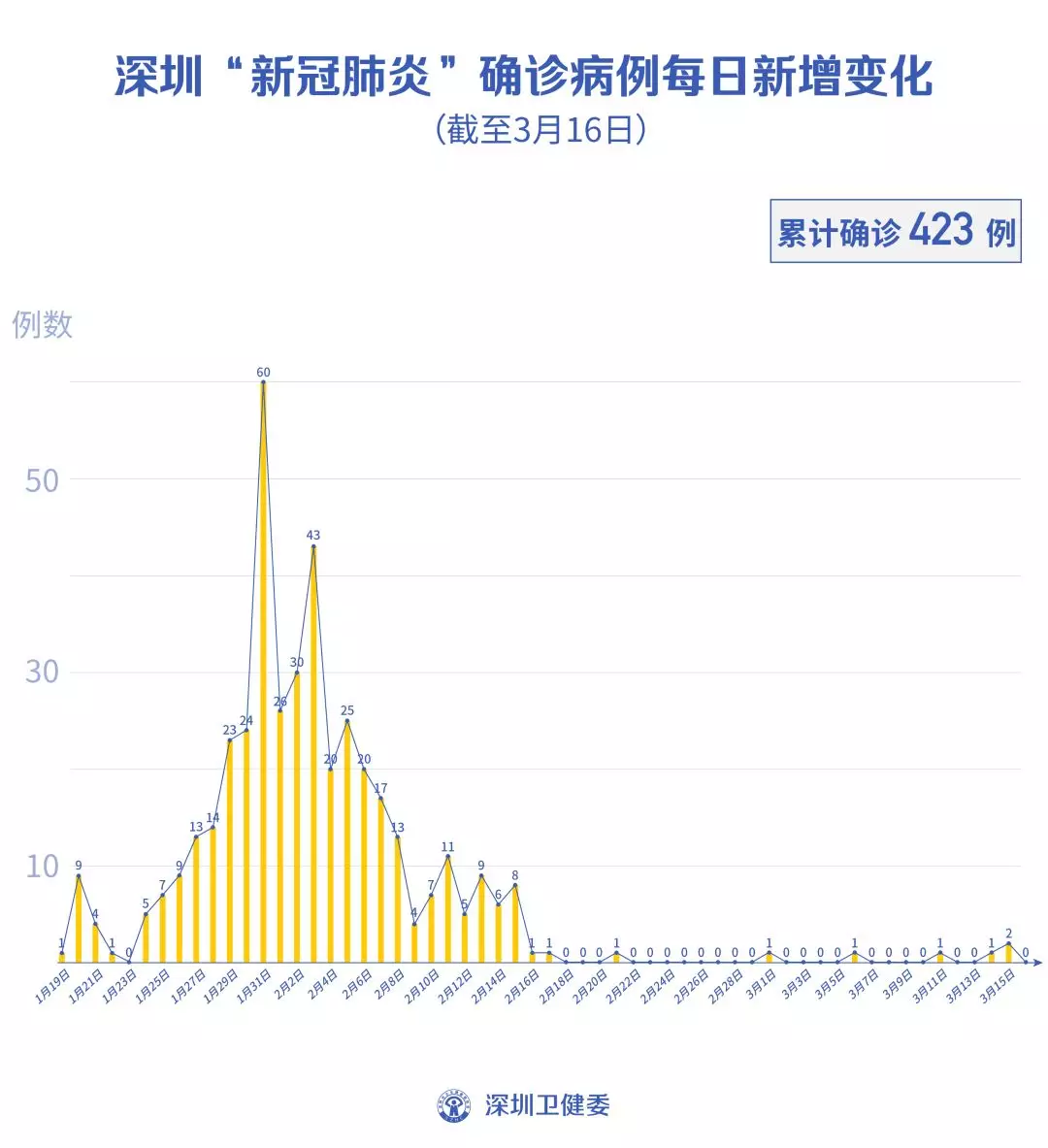 截至3月16日24時,深圳累計報告“新冠肺炎”病例423例。3月16日當天無新增,出院1例。
