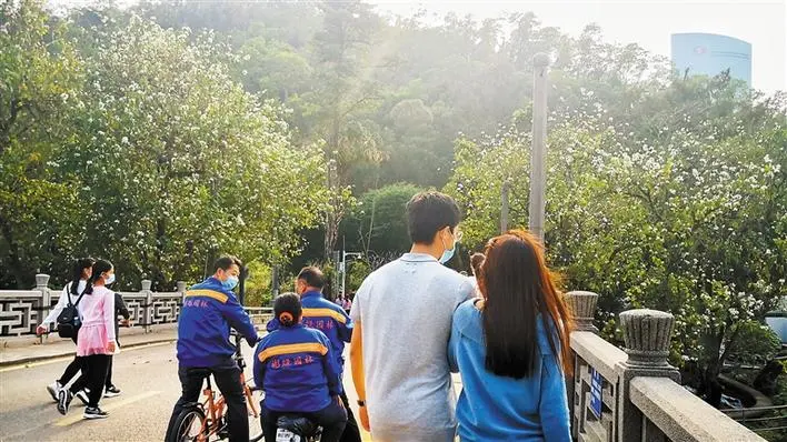 市民們紛紛拿起手上的長槍短炮,以深圳藍(lán)為背景,記錄下春日美景。
