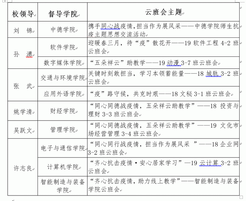 深圳信息學(xué)院校領(lǐng)導(dǎo)參加“云班會”安排表。