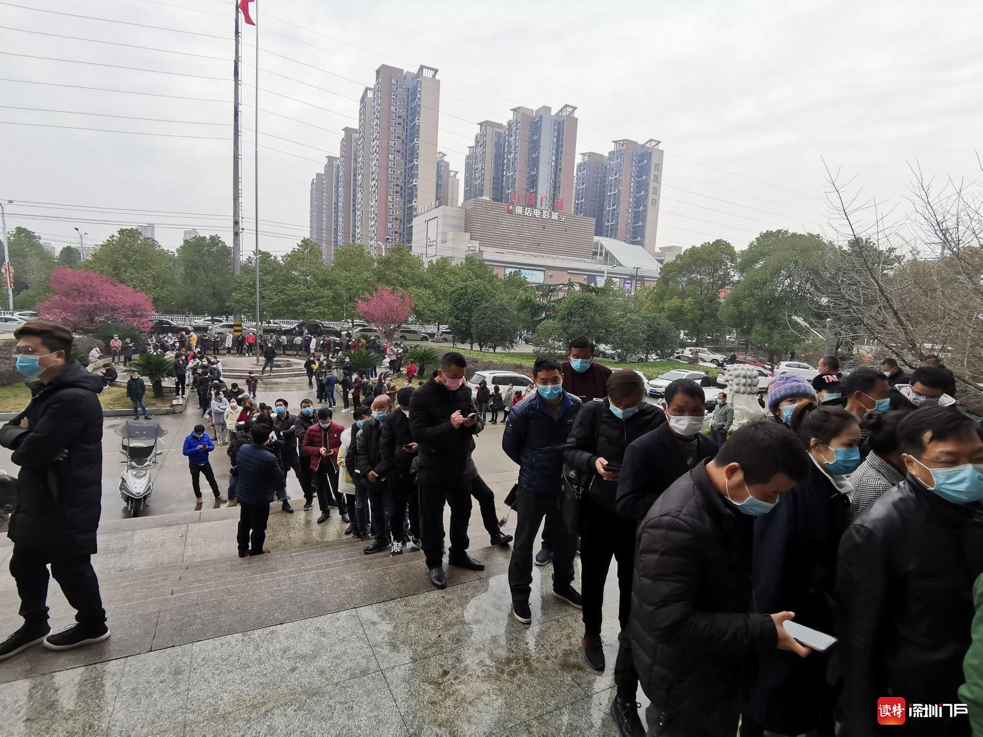 2月23日,監(jiān)利縣交通局門前排隊申請返回工作地的當(dāng)?shù)厝罕姟2痪?,湖北再次升級封控措施,直到近日才逐漸恢復(fù)正常交通。