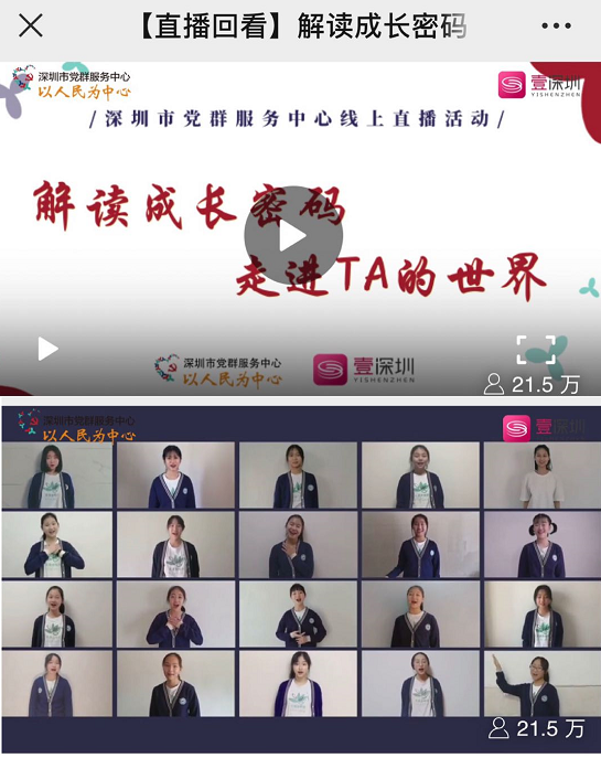 見圳客戶端、深圳新聞網(wǎng) 2020年3月19日訊(記者 陳彬) 3月15日下午,中共深圳市委組織部和深圳廣播電影電視集團(tuán)聯(lián)合在壹深圳客戶端推出深圳市黨群服務(wù)中心線上直播活動,播出深圳市第二實(shí)驗(yàn)學(xué)?;ㄕZ合唱團(tuán)“云合唱”作品《奉獻(xiàn)》,截止3月18日,線上點(diǎn)擊量達(dá)到21.5萬 。