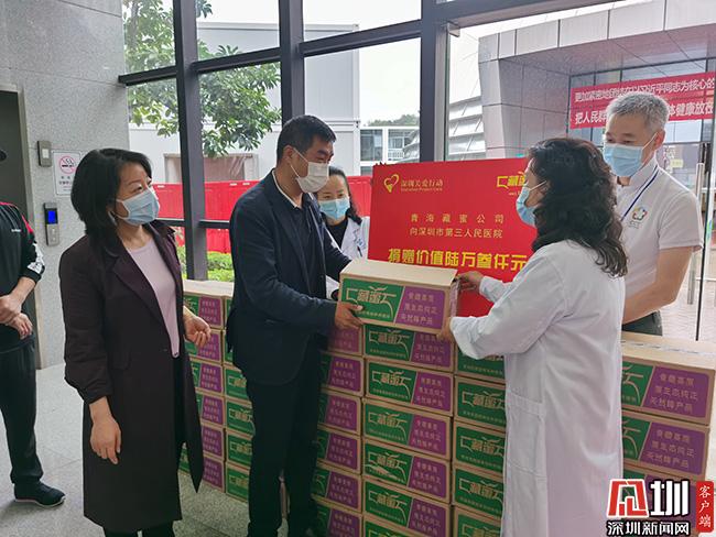 為了向這些最美的逆行者致敬,市關(guān)愛(ài)辦攜手愛(ài)心企業(yè)青海藏蜜公司與深圳市康輝旅行社,看望慰問(wèn)一線的醫(yī)務(wù)工作人員。青海藏蜜公司向一線醫(yī)護(hù)人員捐贈(zèng)1500盒青藏高原野花蜜,總價(jià)值6.3萬(wàn)元。深圳藏蜜營(yíng)銷管理有限公司總經(jīng)理王大鳴動(dòng)情地說(shuō),抗擊疫情是一場(chǎng)沒(méi)有硝煙的戰(zhàn)役,牽系著所有人的心,因?yàn)獒t(yī)護(hù)人員的日夜守護(hù)與付出,大家才能安心復(fù)工,照常生活。希望醫(yī)護(hù)人員能在勞累之余,泡上一杯蜂蜜水,增強(qiáng)抵抗力,緩解心里壓力,更好地續(xù)航戰(zhàn)斗。