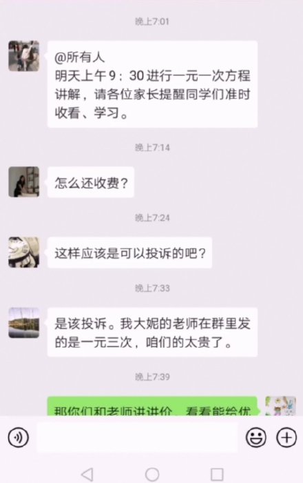 這個家長群,最后因為一句話徹底陷入安靜:“那你們和老師講講價,看看能給優(yōu)惠嗎?”