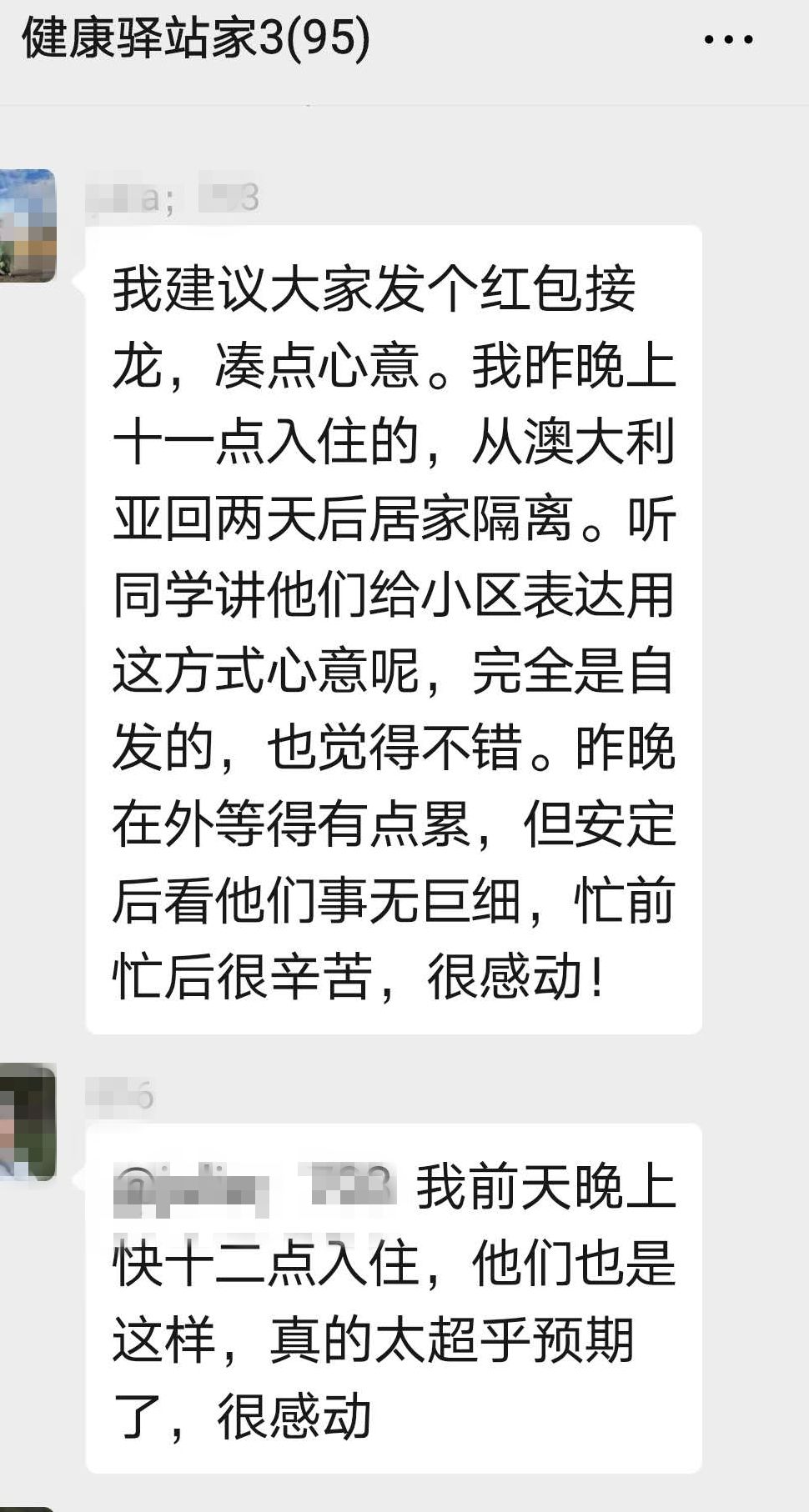 第二天,阿姨在微信群里說,昨晚雖然在外面等的有點累,但是看到工作人員事無巨細,忙前忙后很辛苦,非常感動,想以紅包接龍的方式表達對工作人員的感謝。醫(yī)護人員拒絕了阿姨的好意,心里暖暖的:“我們用醫(yī)務(wù)工作者的初心,用我們的耐心和愛心做好了工作,一切辛苦都值得了。”