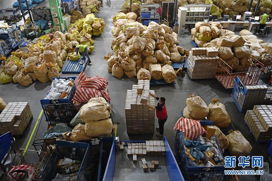 4月1日,在深圳郵件處理中心,工作人員在搬運(yùn)郵件。據(jù)深圳市郵政管理局介紹,春節(jié)以來,深圳郵政快遞業(yè)累計(jì)向湖北運(yùn)送各類醫(yī)療、防疫物資超2萬(wàn)批次,累計(jì)為深圳市民配送防疫物資和生活必需品超過2.5億件,為防疫物資和群眾基本生活必需品送達(dá)提供了有力保障。新華社記者 梁旭 攝