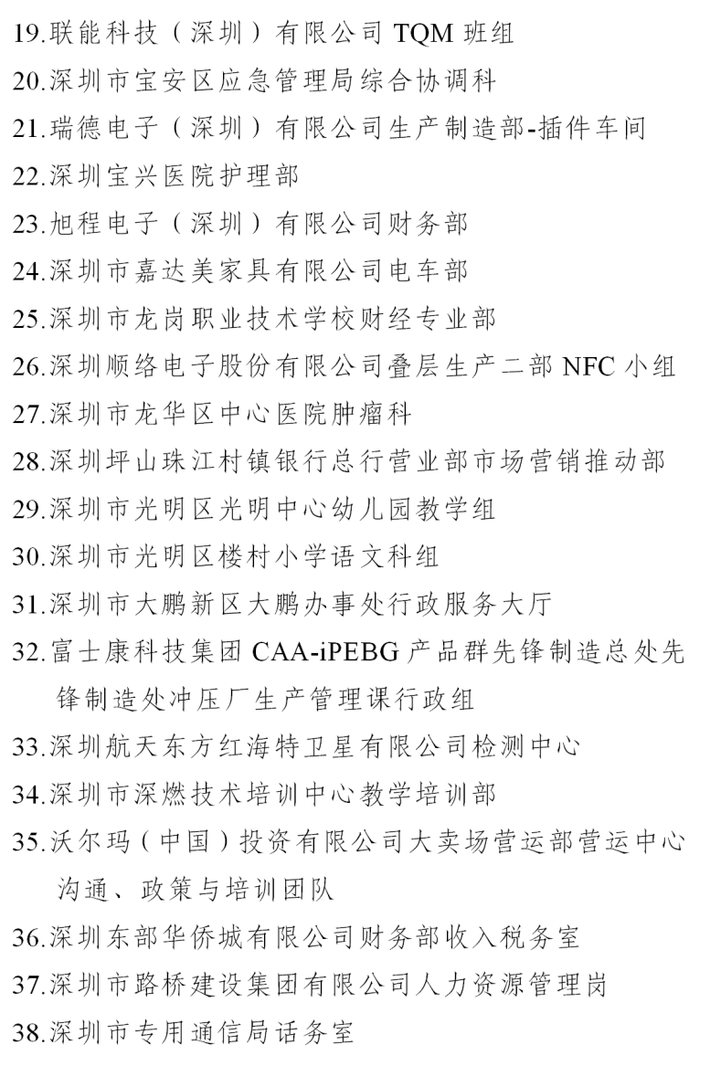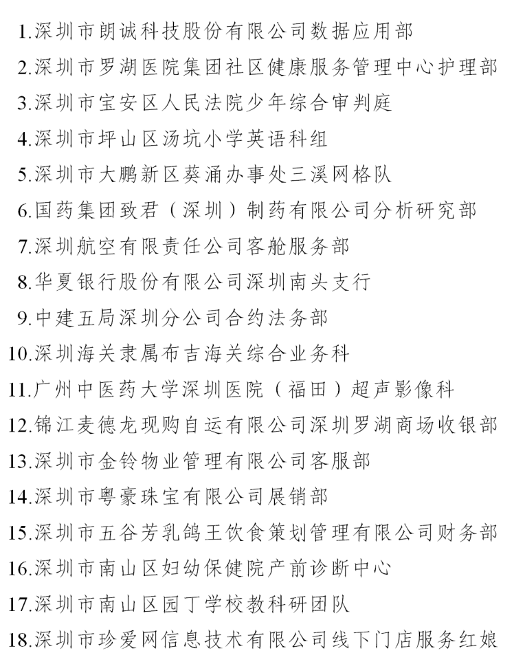 一、深圳市五一巾幗標(biāo)兵崗名單