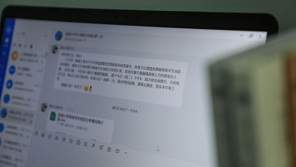 上午的直播課剛結(jié)束,周老師又開始處理起收集統(tǒng)計數(shù)據(jù)的工作。周老師的丈夫同樣也是一名教師,相比其他在家辦公的老師而言,雙教師家庭的教學(xué)設(shè)備就顯得緊張了起來,家里只有一臺電腦,如何兼顧兩個人使用呢?對此,周老師夫婦倆特意調(diào)整錯開了直播課的時間,盡量避免出現(xiàn)兩個人同時需要使用電腦進行直播的情況。但是,除了直播課,在家辦公的老師們,尤其是周老師這樣的班主任,還要使用電腦進行傳達通知、收集各種學(xué)生的信息、備課、批改作業(yè)等工作。有時候,雙方突然都收到需要緊急處理的事項,周老師夫婦只能比別的老師們更加快速、高效完成,兩人之間實現(xiàn)無縫銜接使用,才能不耽誤工作。