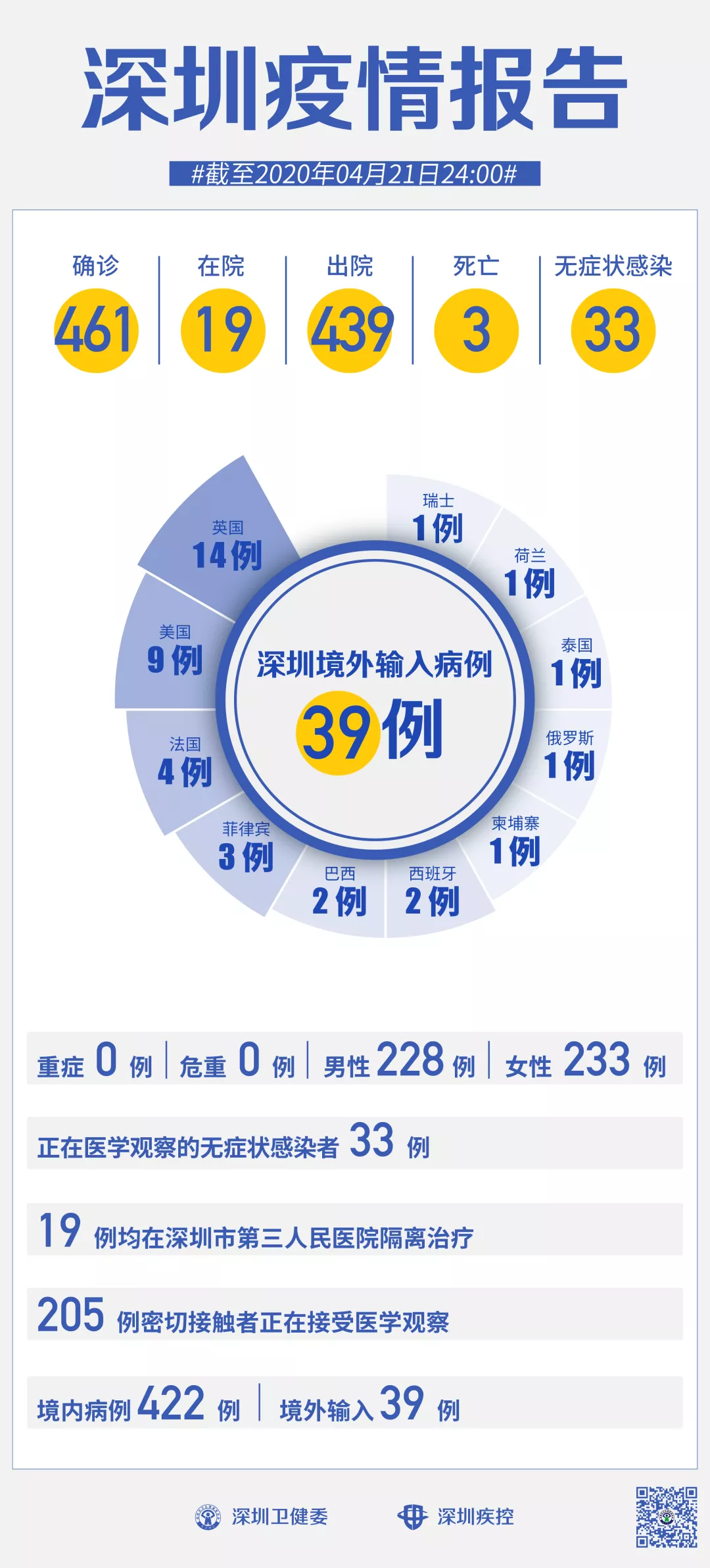 ??截至4月21日24時(shí),深圳累計(jì)報(bào)告新冠肺炎病例461例。4月21日當(dāng)天新增出院6例。